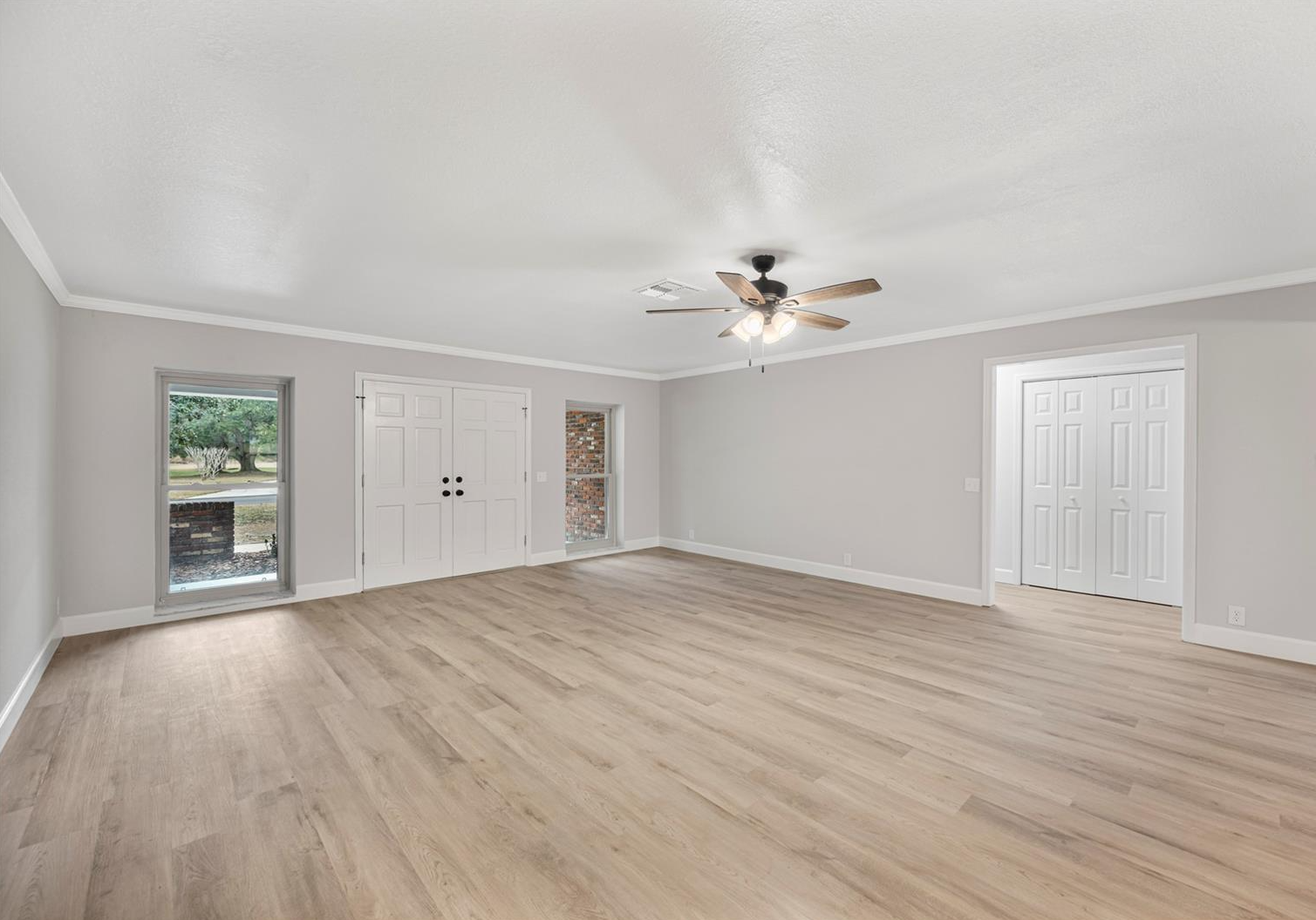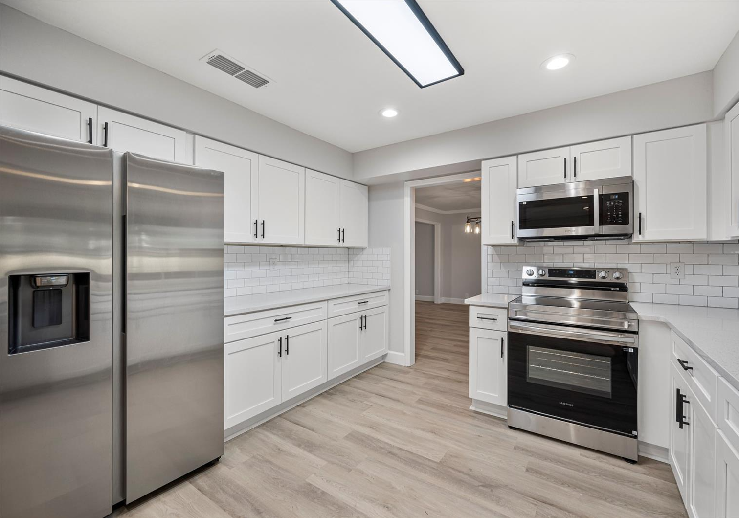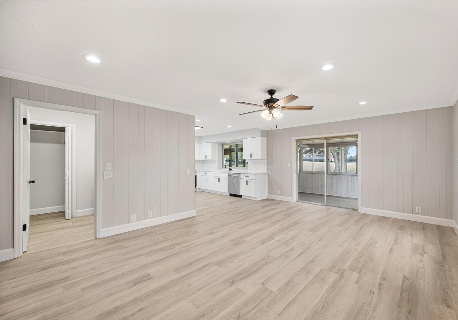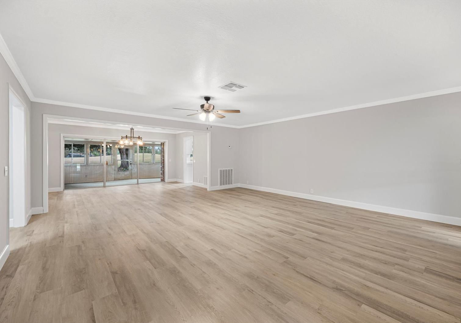 This charming 2-bedroom, 2-bathroom residence features a bright and open layout with a large living area plus an additional family room accented by a cozy brick fireplace and floor-to-ceiling wood built-ins. The brand-new kitchen has been thoughtfully updated with stainless steel appliances, quartz countertops, and all new cabinetry, along with a convenient passthrough window to the large glass-enclosed sunroom with A/C, making entertaining effortless while enjoying the view. The interior also features crown molding, new luxury vinyl plank flooring throughout the living areas, and new carpet in the bedrooms. Both bathrooms have been fully updated and include dual sink his-and-her vanities.