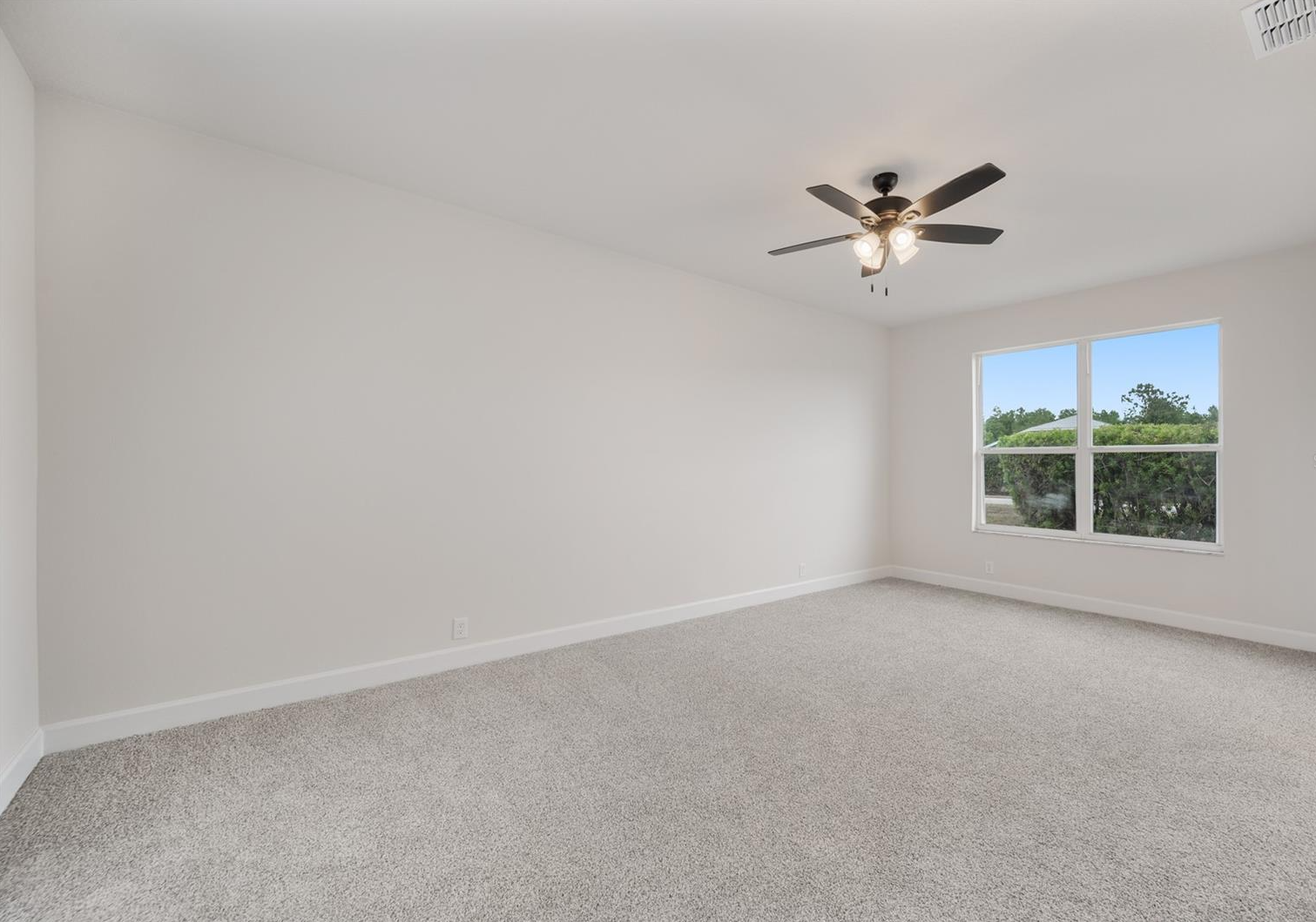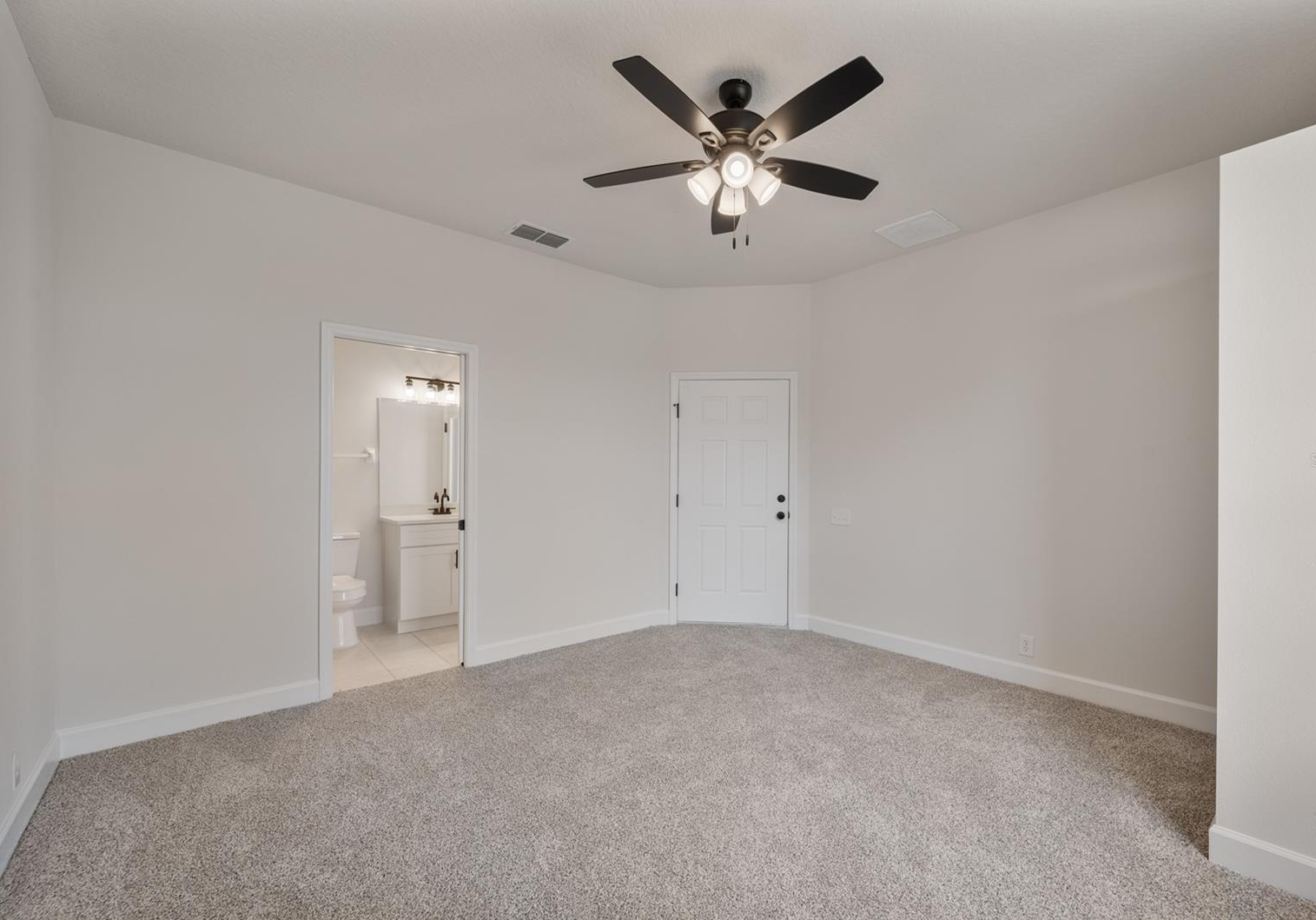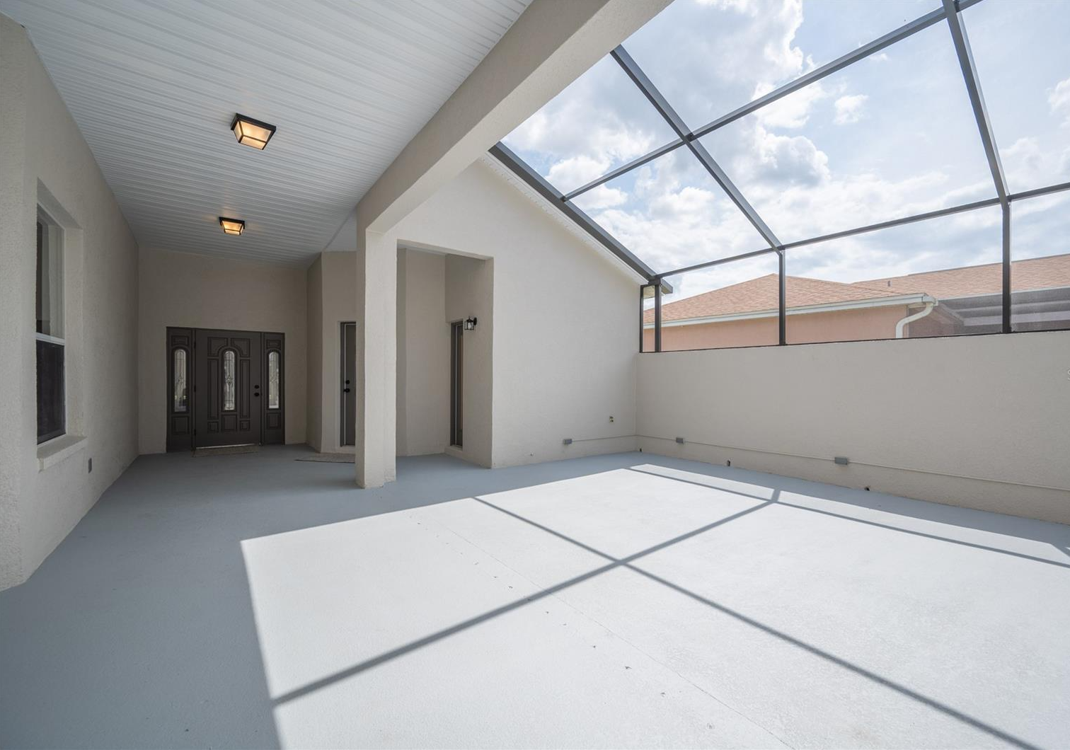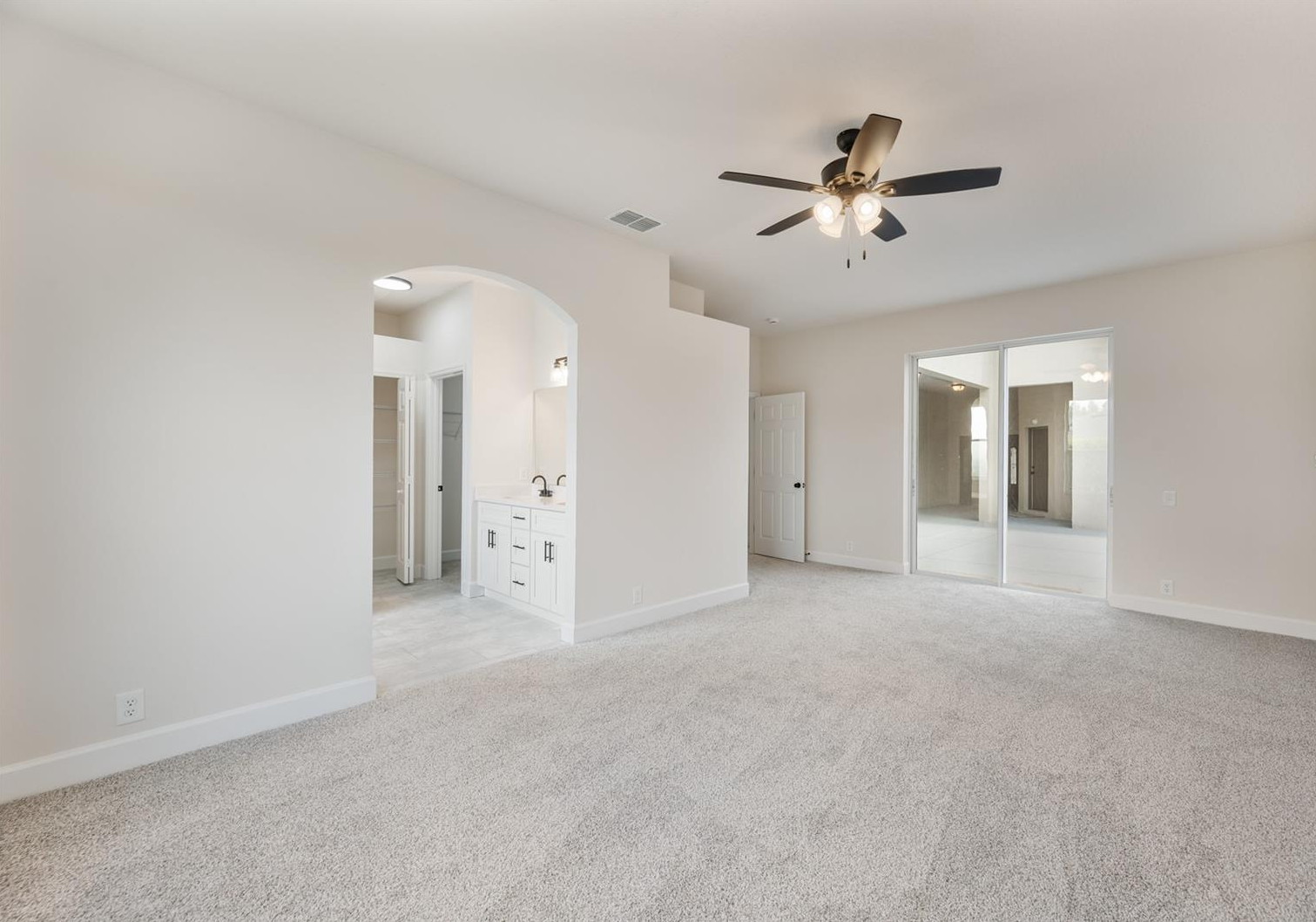 The spacious primary suite provides a relaxing retreat, complete with a large walk-in closet, linen closet, and a luxurious en suite bathroom featuring dual sinks, a soaking tub, and a generously sized walk-in shower. A sliding glass door from the primary bedroom opens directly to the screened-in courtyard, creating a private indoor-outdoor living experience. Adding to the home’s versatility is a detached bedroom with its own private bathroom, ideal for guests, older kids, in-laws, or even a home office space.