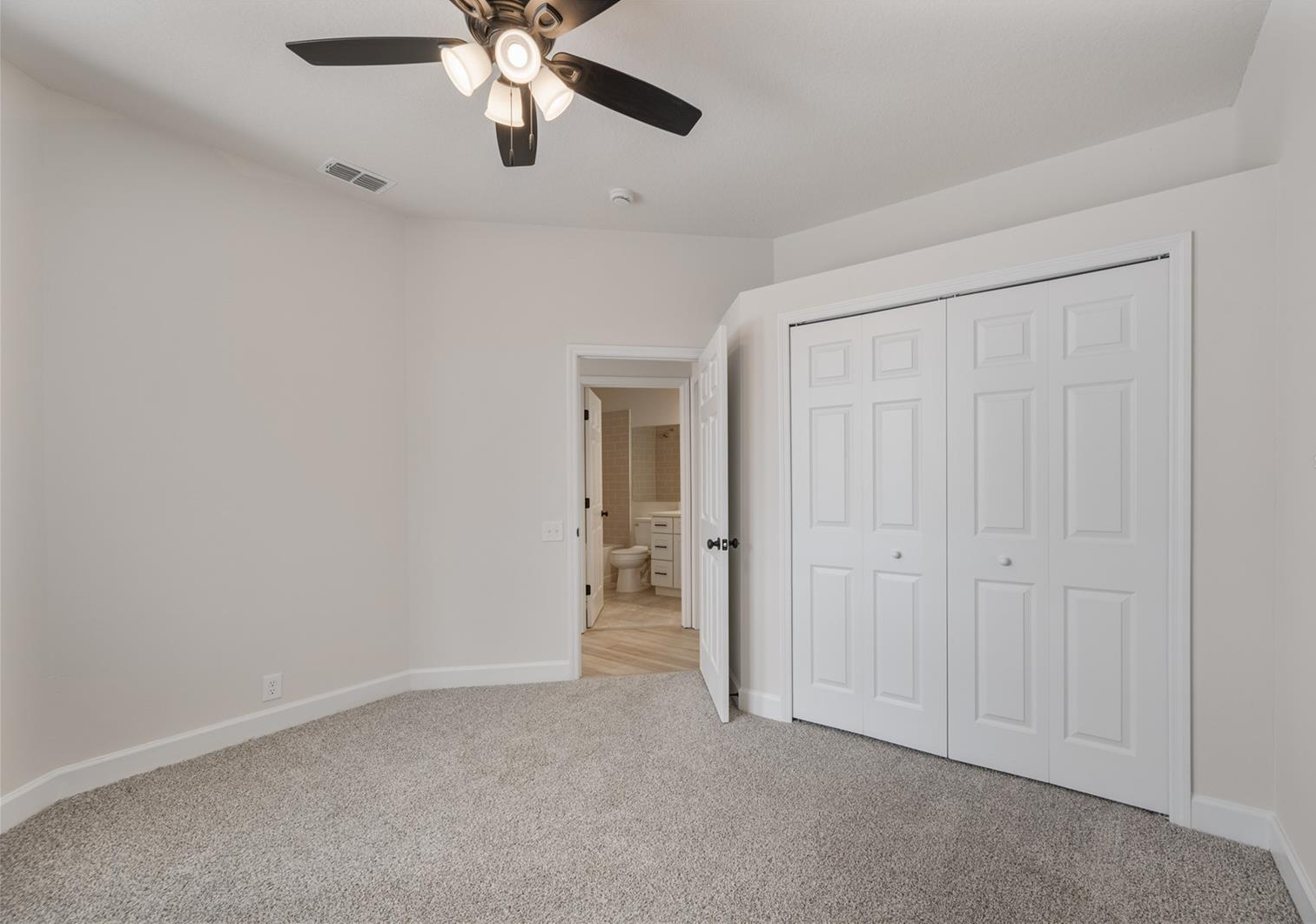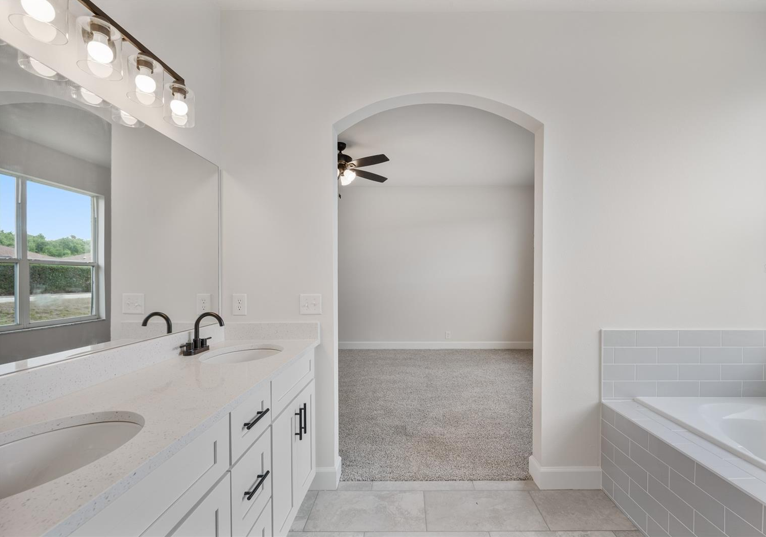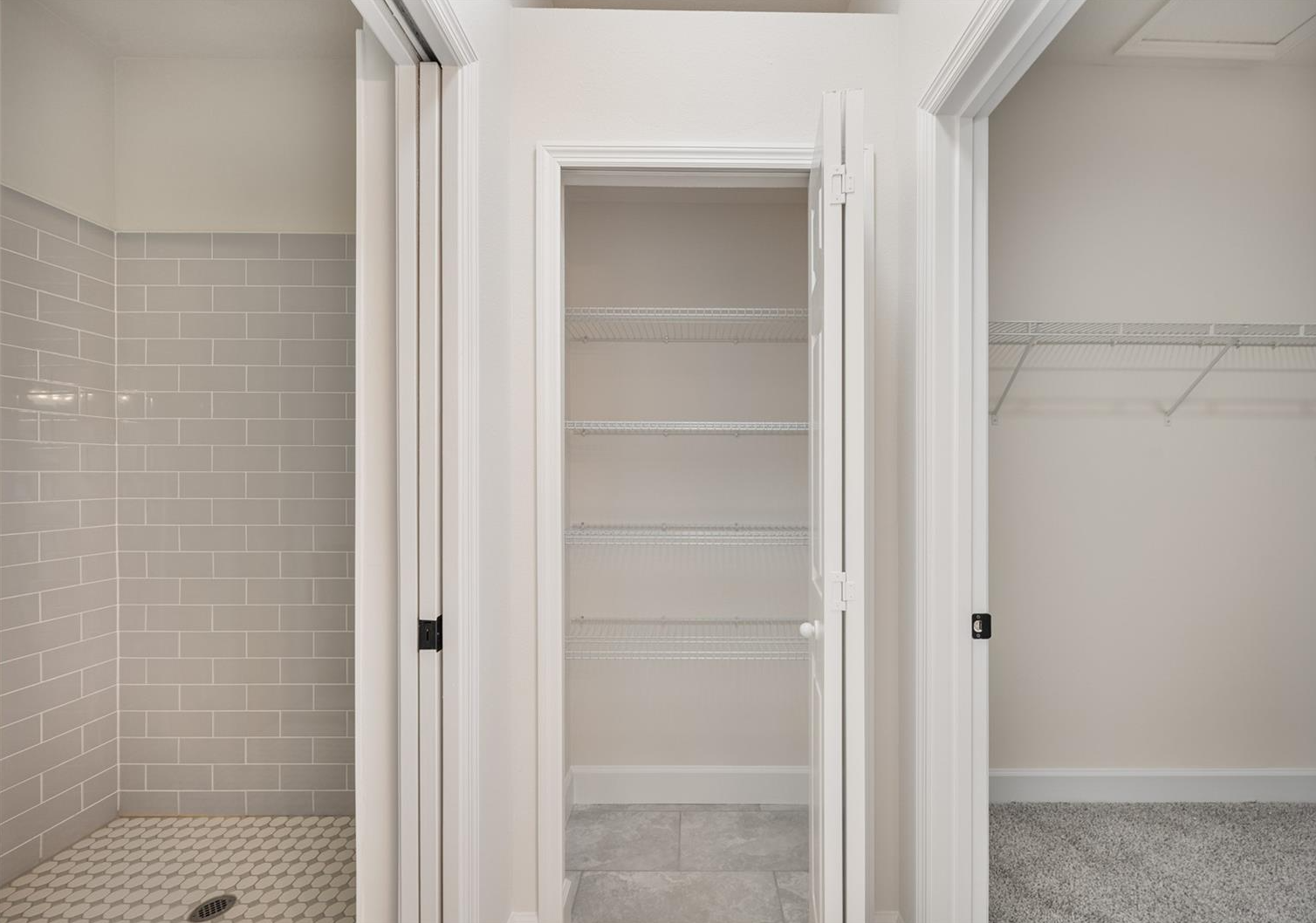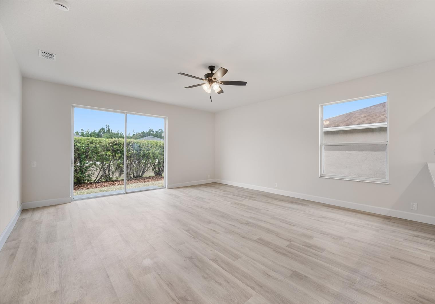 The spacious primary suite provides a relaxing retreat, complete with a large walk-in closet, linen closet, and a luxurious en suite bathroom featuring dual sinks, a soaking tub, and a generously sized walk-in shower. A sliding glass door from the primary bedroom opens directly to the screened-in courtyard, creating a private indoor-outdoor living experience. Adding to the home’s versatility is a detached bedroom with its own private bathroom, ideal for guests, older kids, in-laws, or even a home office space.