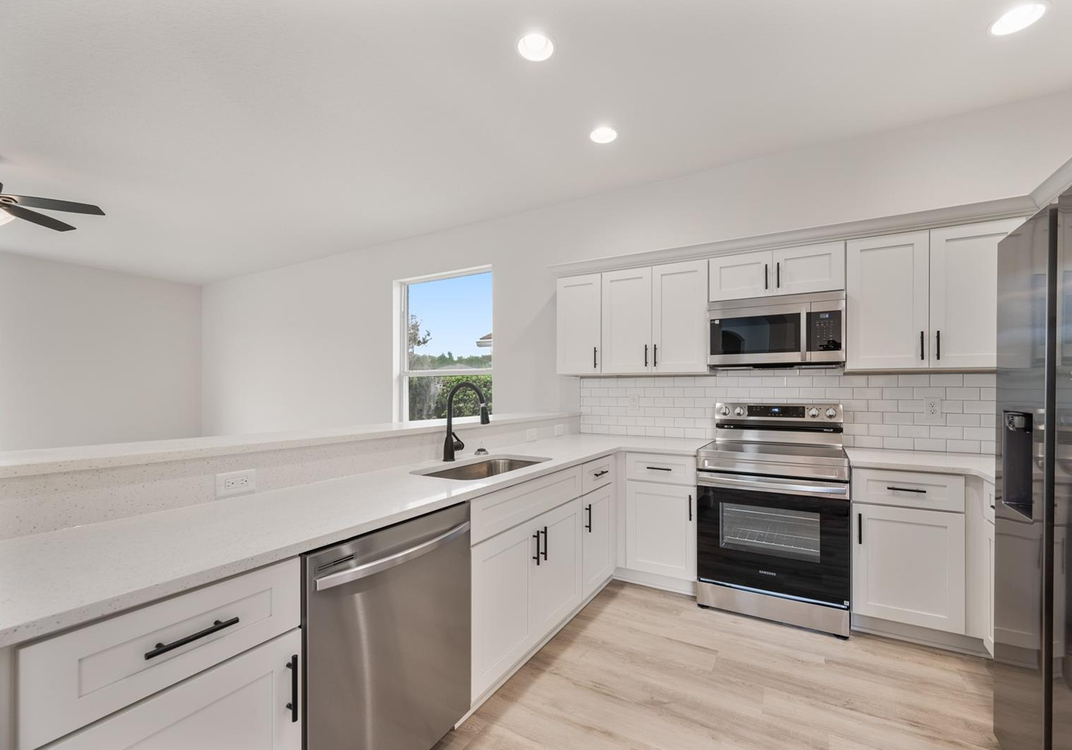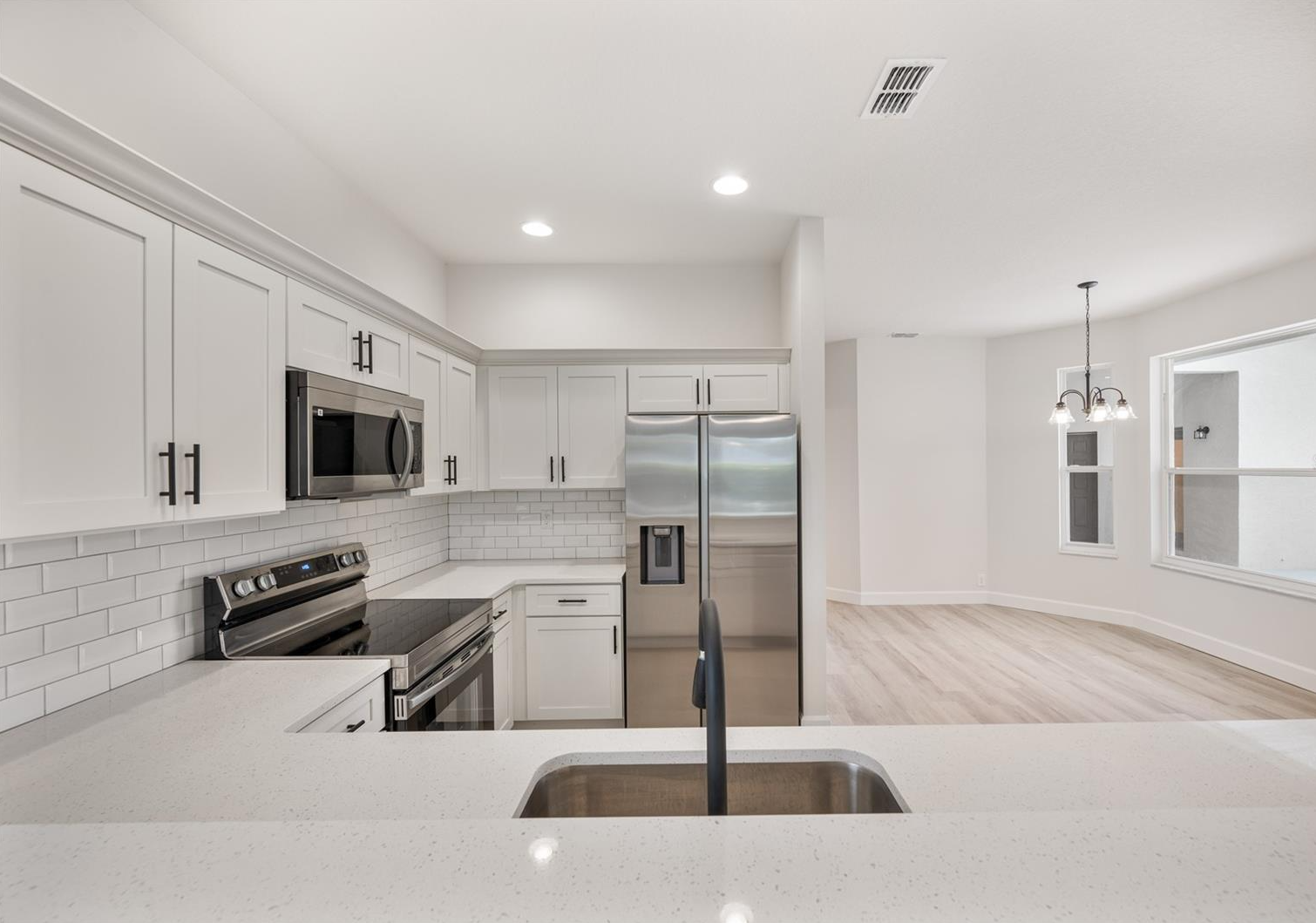 Thoughtfully updated from top to bottom, this move-in-ready residence offers peace of mind with a brand-new roof and A/C system, along with stylish new finishes throughout. The stunning new kitchen is a true centerpiece, featuring stainless steel appliances, ample cabinetry, and sleek quartz countertops, all designed for everyday living and entertaining. Luxury vinyl plank flooring flows through the main living areas, complemented by plush new carpet in the bedrooms and fresh tile in the bathrooms.