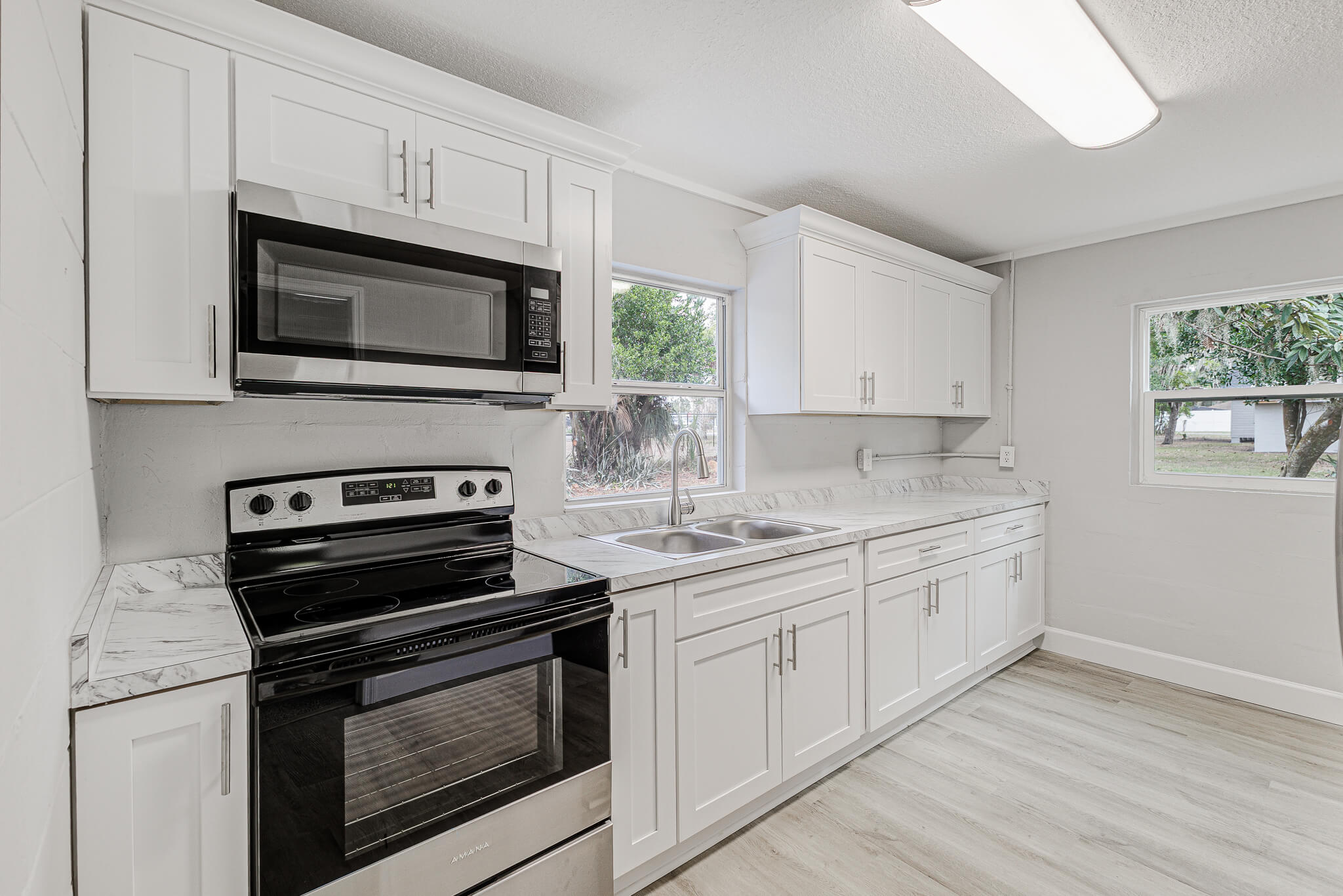 This move-in-ready property has been thoughtfully updated, featuring newer windows, fresh interior and exterior paint, and new landscaping that enhances its curb appeal. Inside, an open living room welcomes you with all-new luxury vinyl plank flooring. The brand-new kitchen features stainless steel appliances, new countertops, new cabinets, and a pantry. The bedroom offers new plush carpeting, while the fully renovated bathroom features a new vanity and classic subway shower tile.