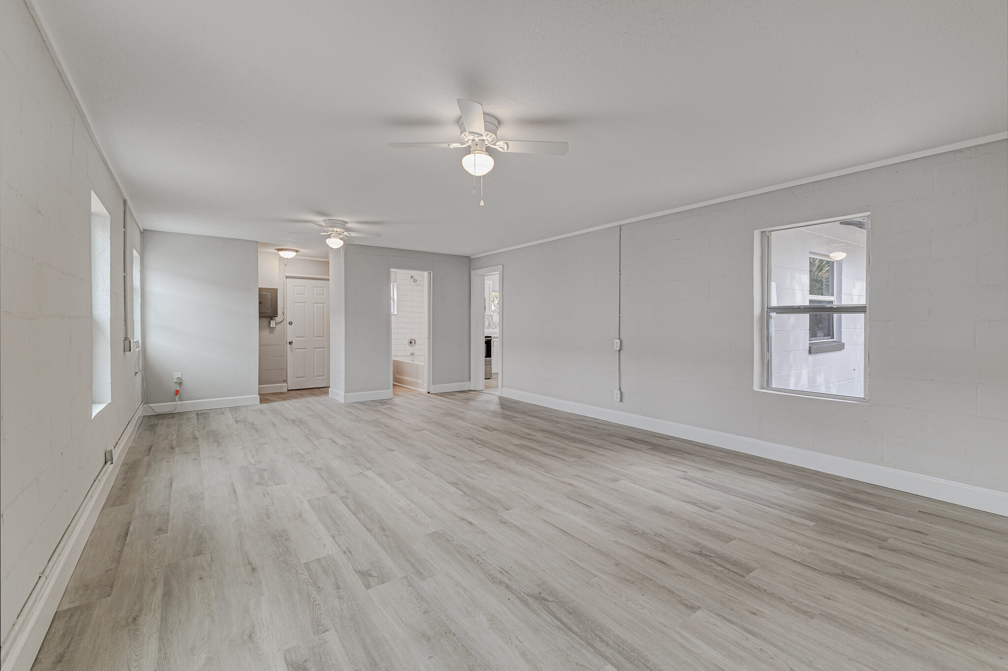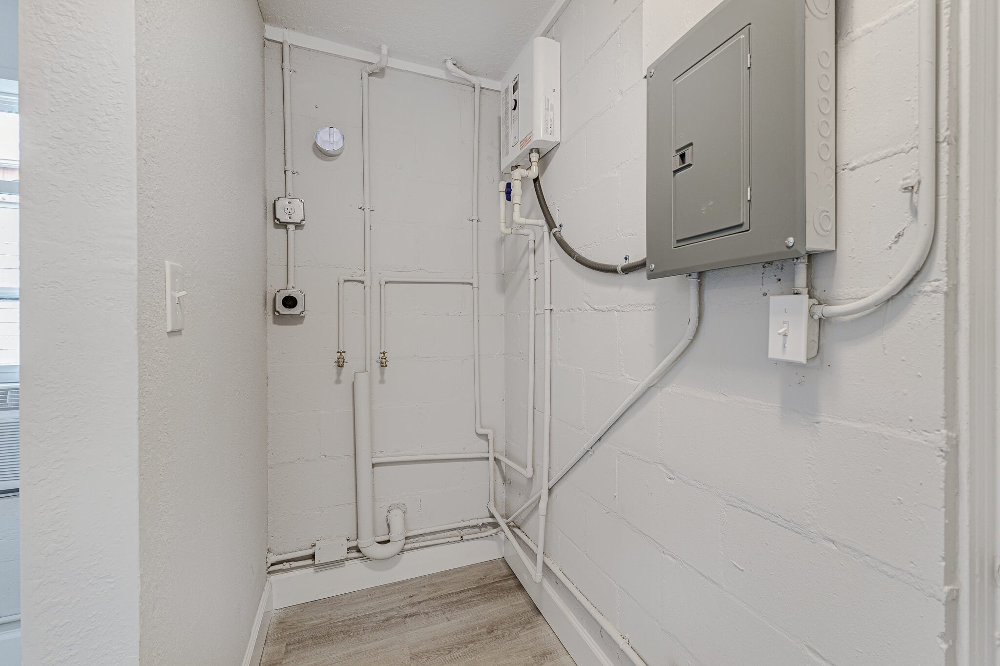 Additional upgrades include a new wall A/C unit, a new electric tankless water heater, updated electrical, and the convenience of an indoor laundry room.